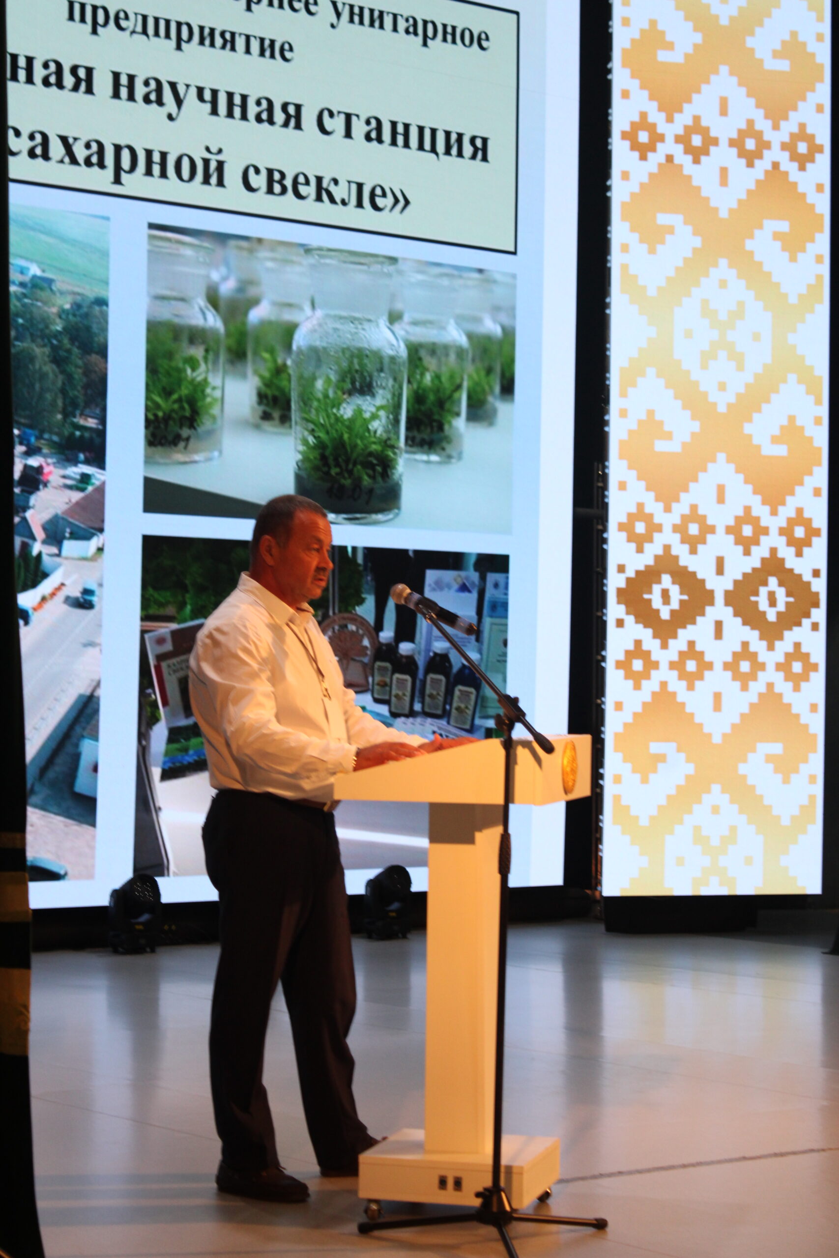 свеклосахарной отрасли Беларуси, гости из Российской Федерации. Повестка дня включала рассмотрение различных вопросов отрасли, в ходе дискуссии были обозначены приоритетные направления работы на ближайшую перспективу. Гнилозуб Владимир Павлович доложил о состоянии посевов сахарной свеклы в демонстрационных опытах, заложенных в 2024 году в хозяйствах Республики Беларусь. Начальник главного управления растениеводства Министерства сельского хозяйства и продовольствия Республики Беларусь Лешик Николай Владимирович и заместитель председателя концерна «Белгоспищепром» Уласевич Анатолий Васильевич расставили приоритеты развития свекловодства. Генеральный директор «НПЦ НАН Беларуси по земледелию» Кравцов Сергей Владимирович затронул насущные вопросы отрасли. О фитосанитарной ситуации в посевах сахарной свеклы доложил ведущий научный сотрудник РУП «Институт защиты растений» Гаджиева Галина Иосифовна. С докладами о направлениях селекционной работы и о новейших разработках выступили Малыхин Евгений Николаевич селекционер ООО «СоюзСемСвекла» (РФ) и Мелентьева Светлана Александровна — заместитель директора по научной работе Опытной станции. Начало уборки и организационные вопросы с этим связанные, осветил в своем докладе заместитель директора по сырью ОАО «Городейский сахарный комбинат» — Абрамович Игорь Константинович.