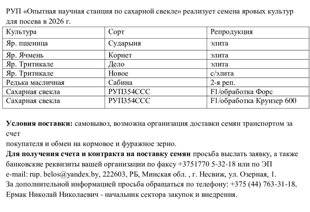 На базе РУП «Опытная научная станция по сахарной свекле»г.Несвиж начался процесс протравливания семян яровых зерновых культур, в рамках подготовки к посевной компании яровых зерновых культур 2026 года, а так же с целью реализации протравленного продукта заинтересованным хозяйствам.
