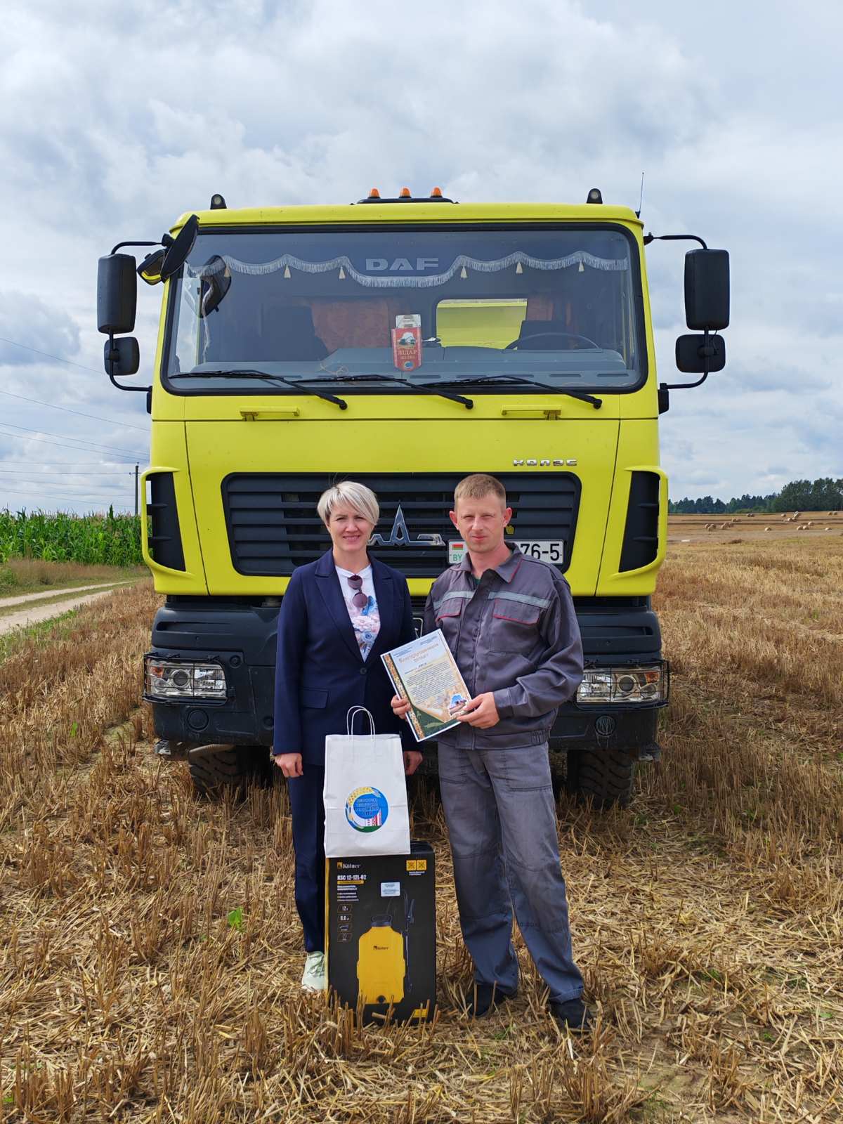 Вчера председатель Несвижской районной организации профсоюзов работников АПК — Светлана Мацкевич поздравила водителя нашего предприятия Корсака А.Н. с перевозкой 500 тонн зерна.