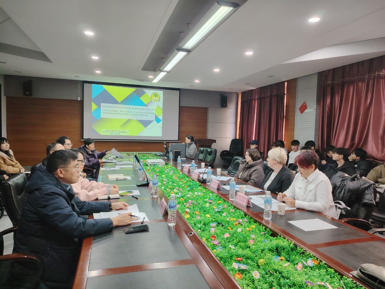 работы, научно-техническим оснащением, обсуждение возможности совместной работы по селекции сахарной свеклы. В ходе посещения Хэйлунцзянского университета были сделаны выступления: «Свекловодческая отрасль Республики Беларусь. Сохранение, изучение и использование генетических ресурсов сахарной свеклы» и «Селекция сахарной свеклы в Республике Беларусь».