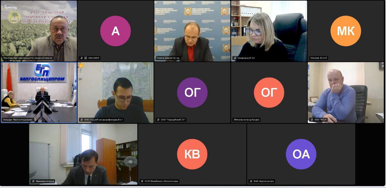 Сегодня в формате ВКС состоялось совещание по вопросам уборки сахарной свеклы, готовности полей к посевной кампании 2025 года, обеспеченности семенами на предстоящий сезон. В разговоре приняли участие руководство концерна Белгоспищепром, представители Министерства сельского хозяйства и продовольствия Республики Беларусь, областные комитеты по сельскому хозяйству, руководители сырьевых служб сахарных заводов Беларуси, руководство опытной научной станции по сахарной свекле. Директор В.П. Гнилозуб в своем выступлении обозначил необходимость внедрения отечественных гибридов в производство, рассказал о возможном распределении семян по сырьевым зонам. Получена поддержка концерна и министерства в этих вопросах, определены дальнейшие шаги для решения насущных задач.