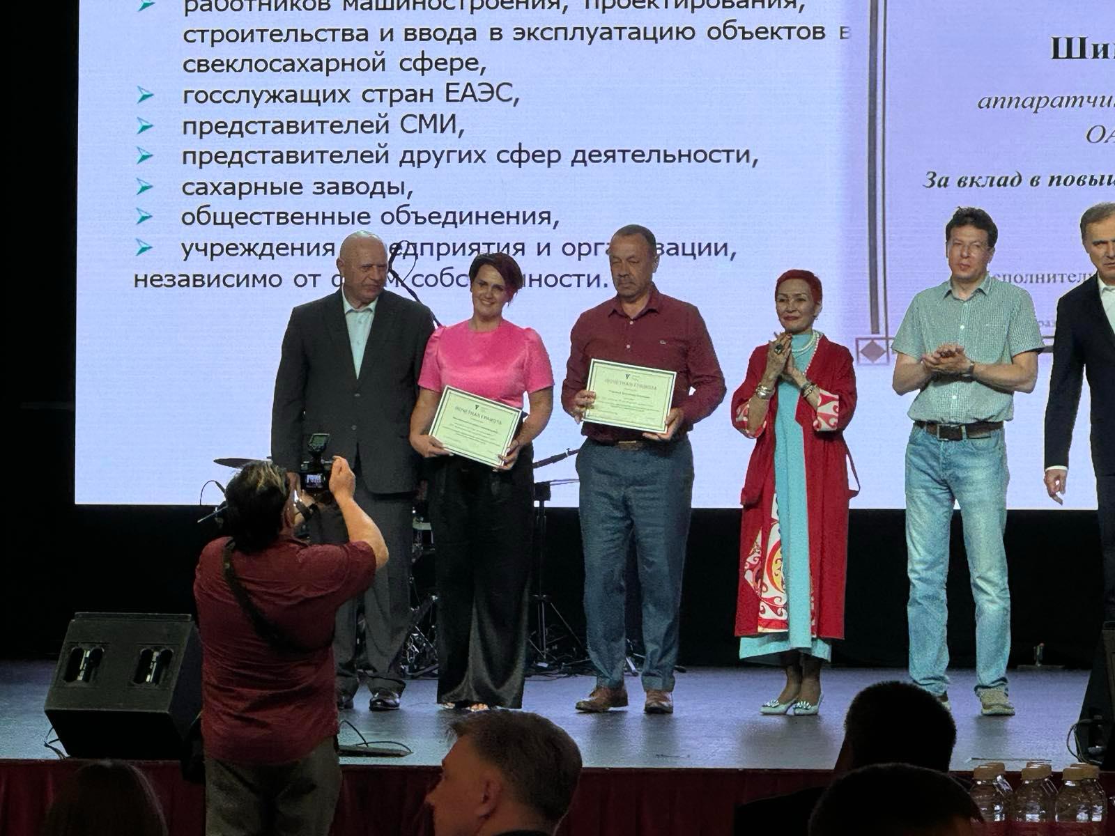 За вклад в повышение эффективности свеклосахарного производства Евразийского Экономического Союза директору В.П. Гнилозубу и заместителю директора по научной работе С.А. Мелентьевой были вручены Почетные грамоты.