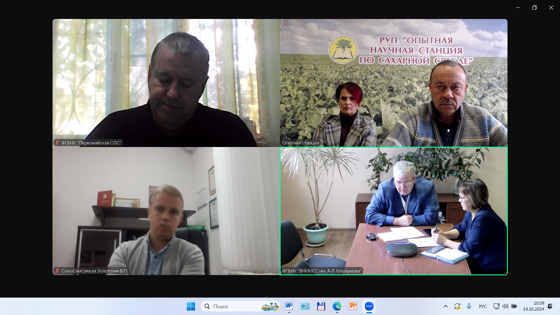 14 октября в формате онлайн состоялось совещание, основным вопросом которого стало обсуждение подачи проекта Союзной программы по сахарной свекле. В совещании приняли участие руководители и представители научных учреждений Беларуси и России в области сахарной свеклы, заинтересованные в реализации программы. От каждой из организаций прозвучали слова поддержки, были высказаны пожелания, оговорены технические вопросы.