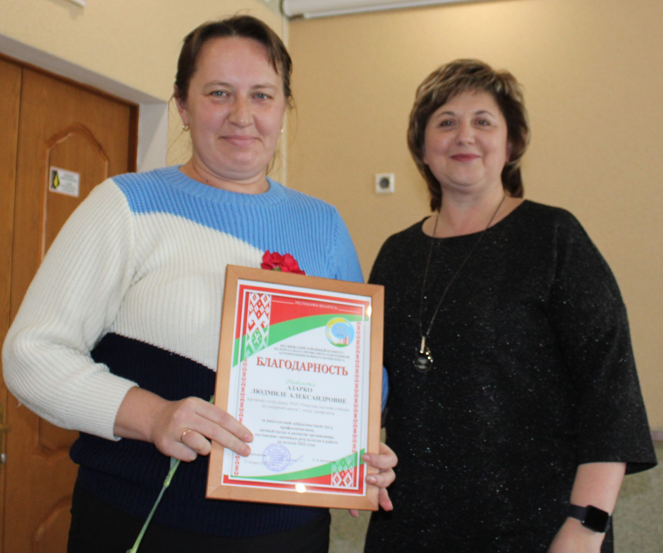 Благодарности от районного комитета профсоюзов АПК были вручены Людмиле Александровне Азарко, Татьяне Вальдемаровне Масловой, Марине Леонидовне Цвирко.