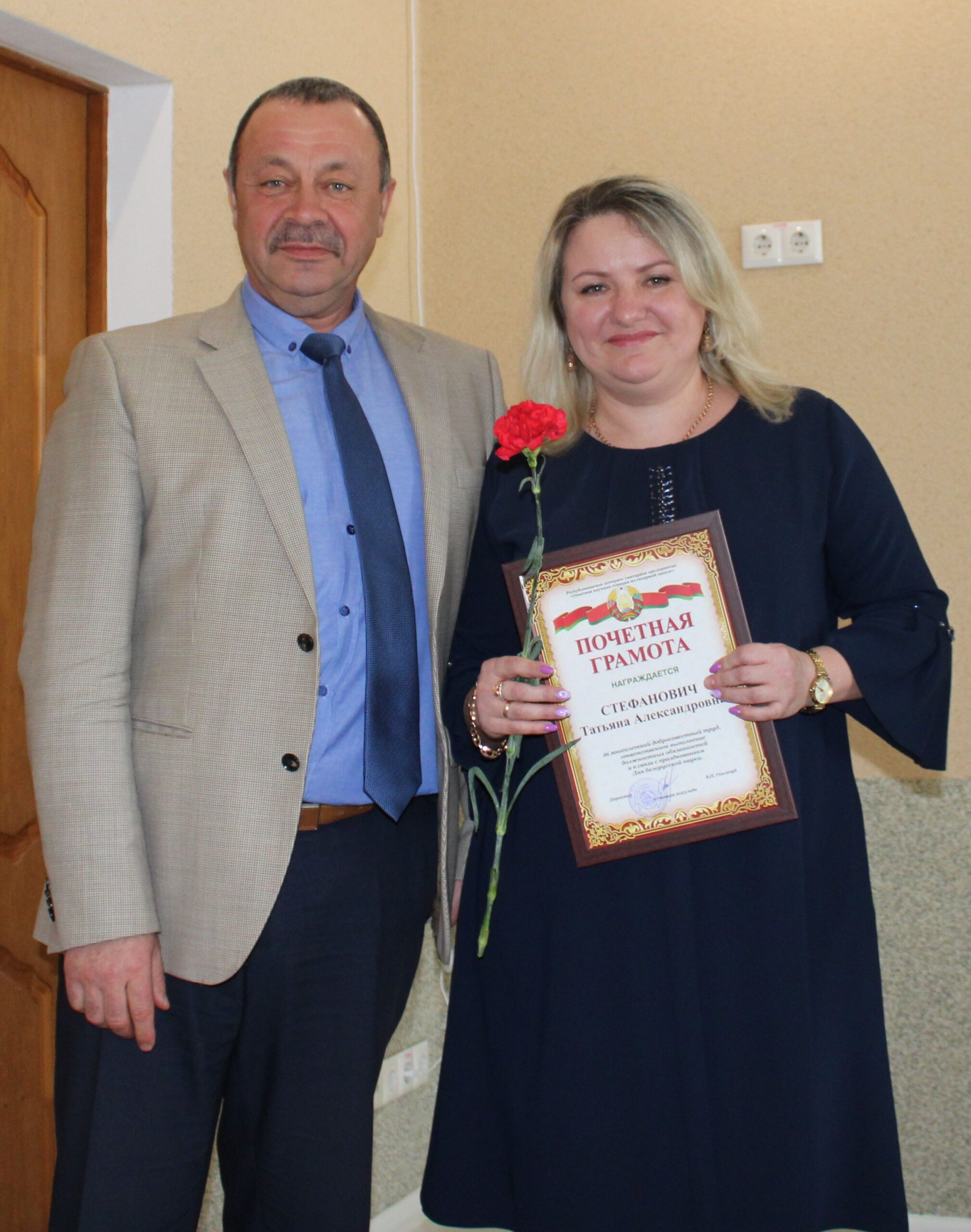 27 января в организации прошло торжественное мероприятие, посвященное празднованию Дня белорусской науки! Коллектив Опытной станции принял поздравления с профессиональным праздником от директора — Владимира Павловича Гнилозуба. В мероприятии приняла участие Светлана Анатольевна Антончик — председатель Несвижской районной профсоюзной организации АПК.