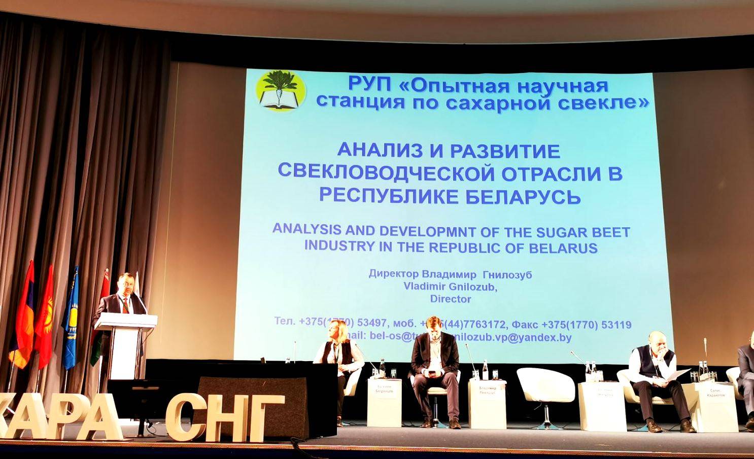 Директор РУП «Опытная научная станция по сахарной свекле» В.П. Гнилозуб, в своем выступлении представил анализ по основным показателям развития свекловодческой отрасли за последние 10 лет и планы на 2022 год.  Также в выступлении  были сделаны предложения сотрудничества в области селекции и семеноводства сахарной свеклы по созданию  совместных гибридов стран ЕАЭС.  При ответе на вопросы было рассказано о применении системы «Конвизо Смарт» в Республике Беларусь.