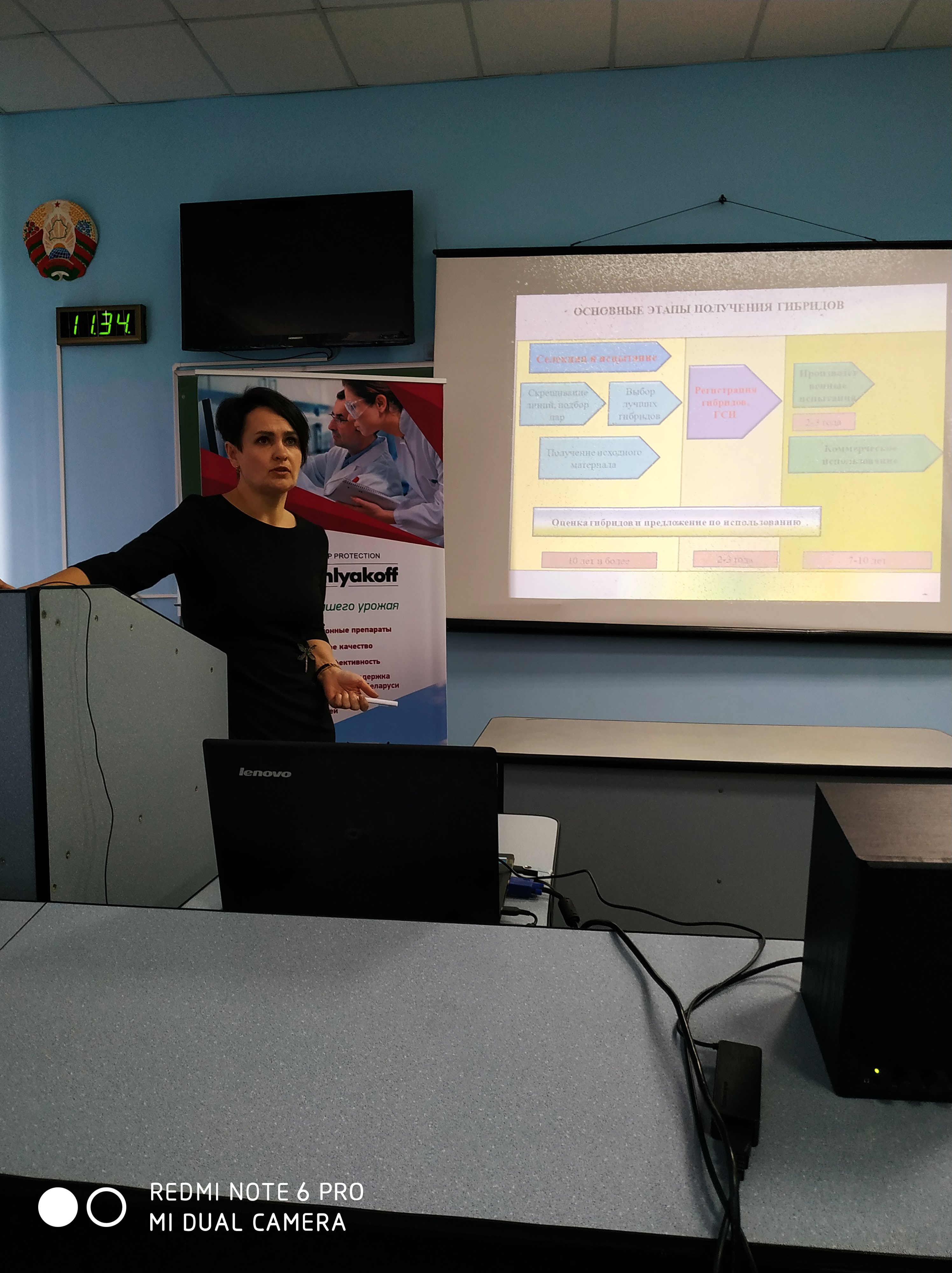 Мелентьева Светлана Александровна, заведующая отделом селекции выступила с лекцией «Полный цикл производства семян сахарной свеклы», где в полном объеме  рассказала  об этапах получения  гибридов сахарной свеклы, о создании гибридов устойчивых к биотическим  и абиотическим факторам, отличающихся высокой продуктивностью, повышенным технологическим качеством.